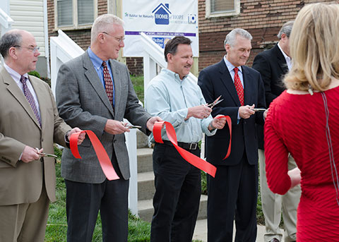Proudly sporting their pink hard hats, Thirty-One home office employees helped build a home for first-time homeowner Christine Travis, empowering her with the tools she needs to raise her family. From laying sod and flooring, to hanging doors and cabinets, to installing siding and porch railings, the pink power was truly undeniable at the first-ever Habitat for Humanity MidOhio Home of Hope Blitz Build!