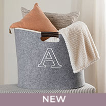 Personalization included on Canvas Storage Bin. Personalization NOT available on Soft & Snuggly Blanket.